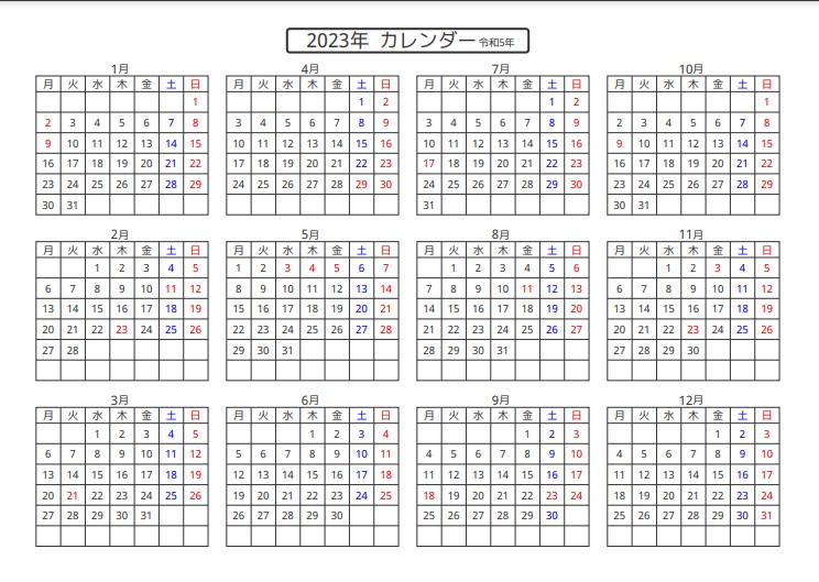 Lịch đỏ của Nhật 2023